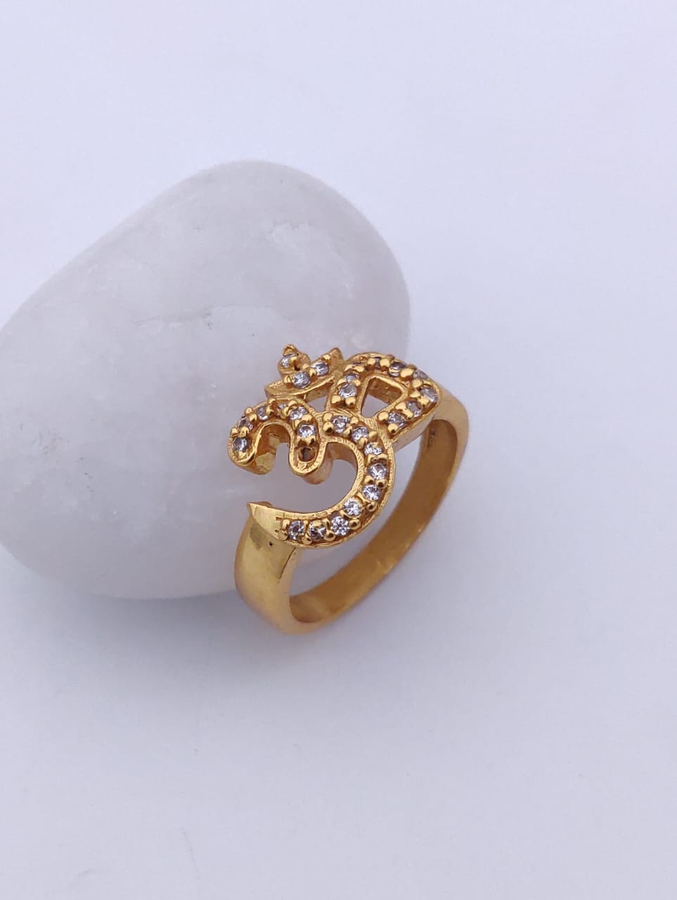 1 Gram Gold Forming Ganpati AD Diamond Free Size Finger Ring