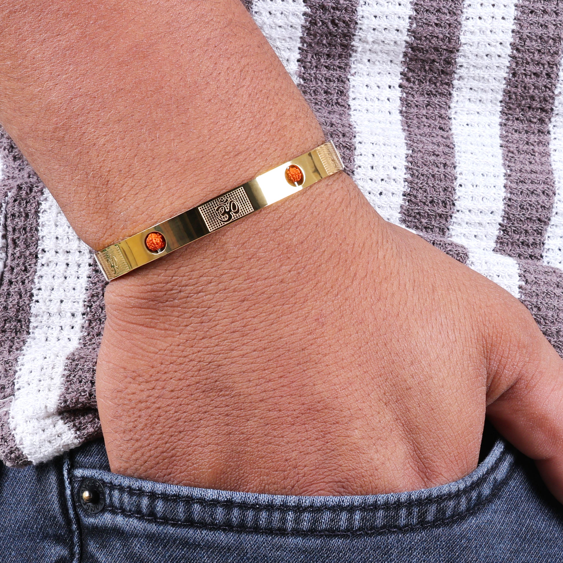 Om and Rudraksha Design Premium Gold Plated Kada